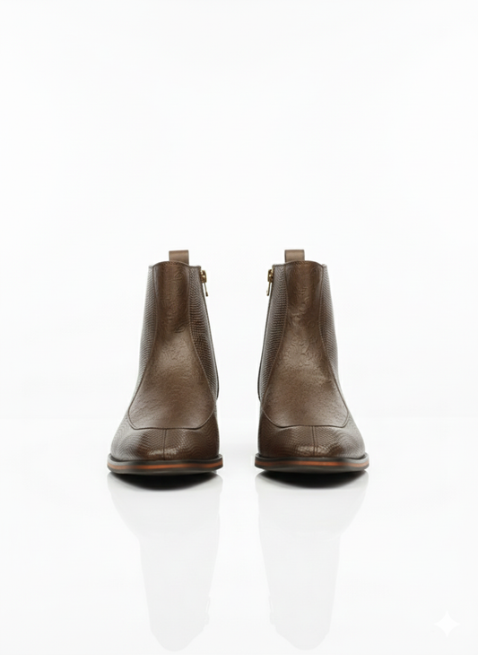 SQUARE TOE TEXTURED LEATHER CUBAN HEEL COWBOY CHELSEA