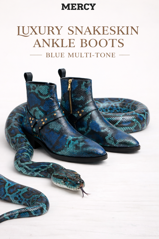 LUXURY SNAKESKIN ANKLE BOOTS – BLUE MULTI-TONE
