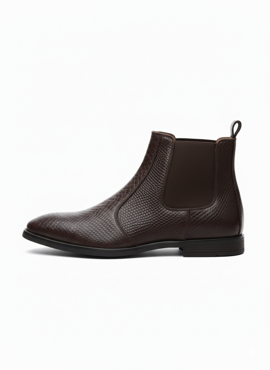 MEN’S BROWN TEXTURED CHELSEA BOOTS – PREMIUM SLIP-ON ANKLE BOOTS