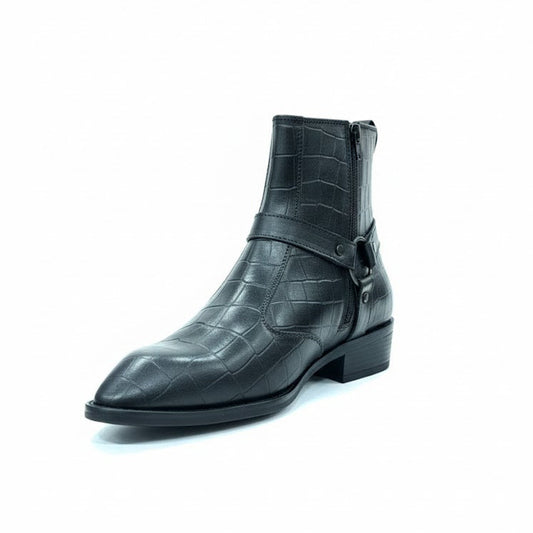 MEN’S BLACK EMBOSSED ZIPPER ANKLE BOOTS
