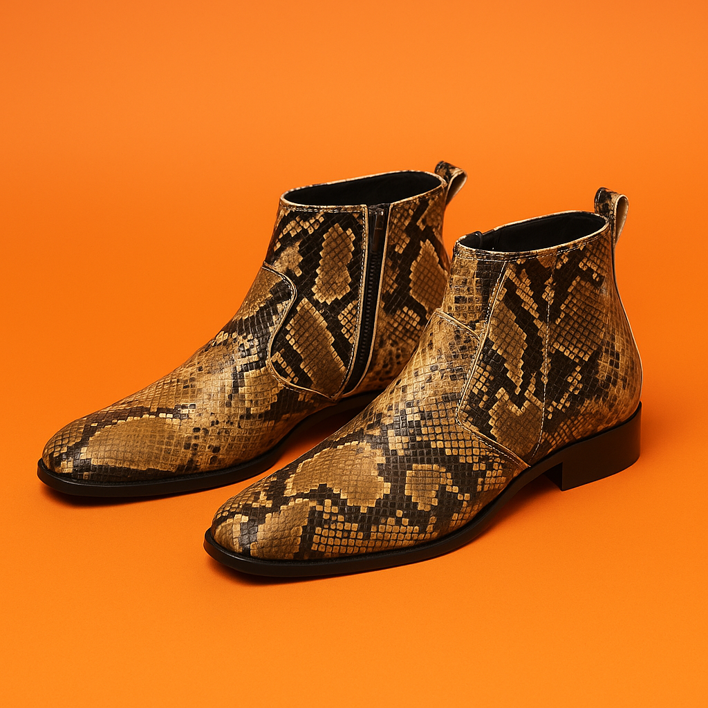 MERCY SNAKE PRINT CHELSEA BOOS WITH ZIP
